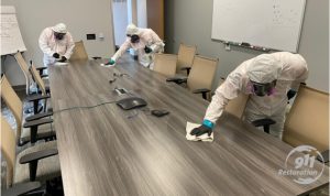 Modern equipment and technology, such as electrostatic sprayers, UV disinfection systems, and foggers, are employed by 911 Restoration experts to improve our competence and spread. These technologies help the disinfectants reach deeper inside the layers of surfaces, and it is the most excellent way to get inside the hard part, which ensures fumigation all over, so the cleaning is done perfectly and thoroughly.
